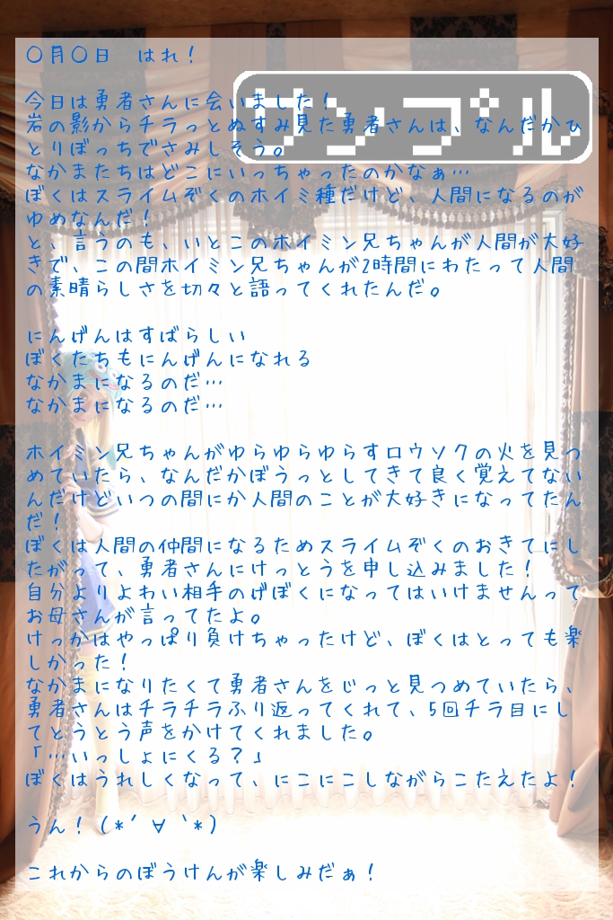 そしてこれが前回ブログで書いたホイミちゃん日記でござるよ。